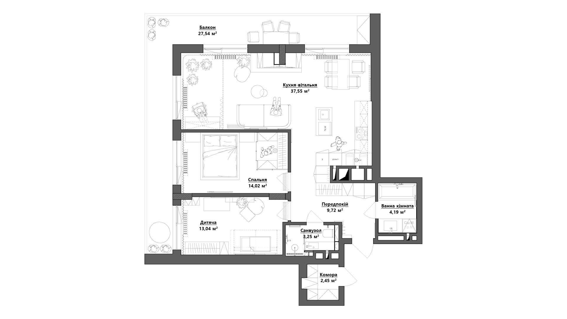 91 м²