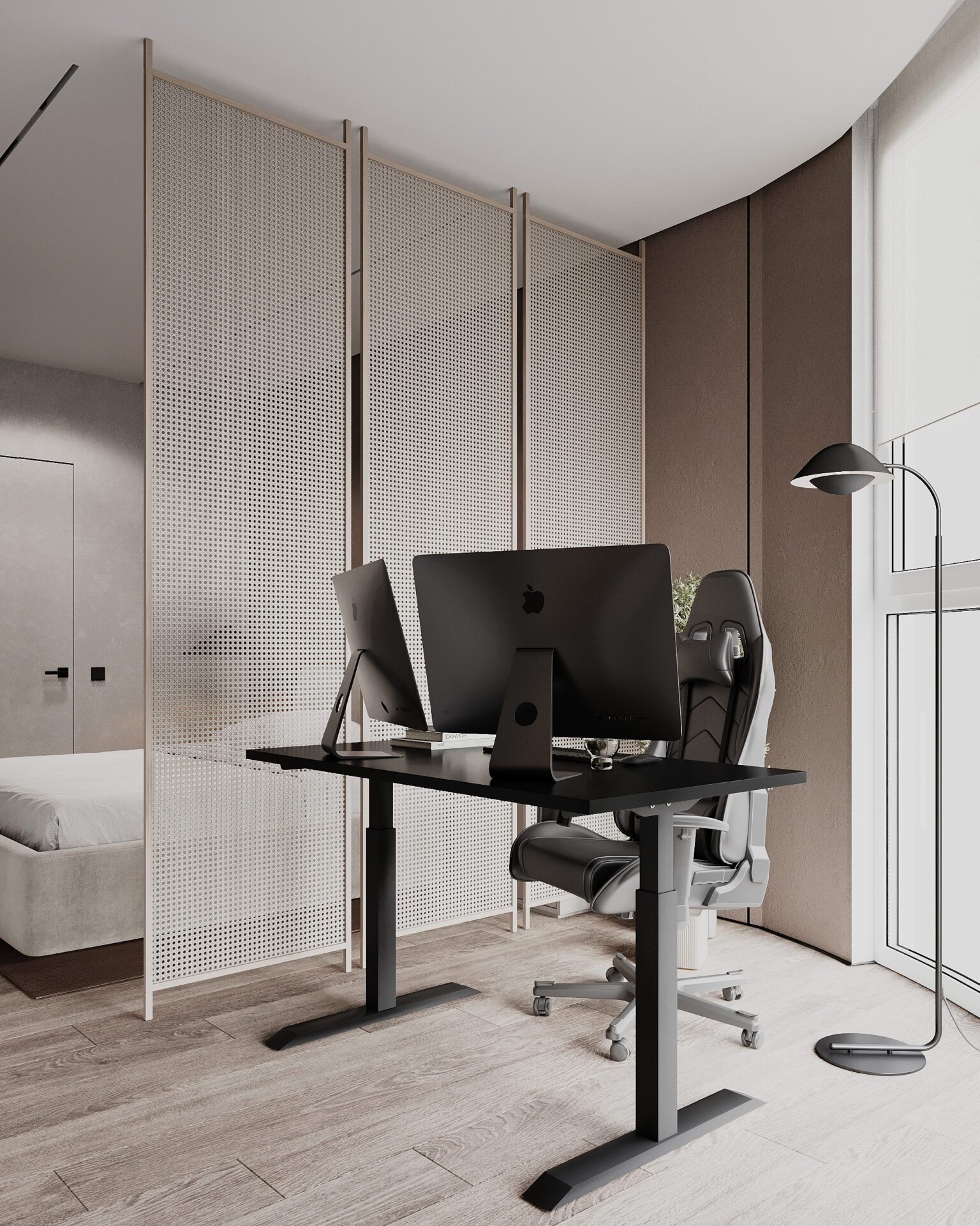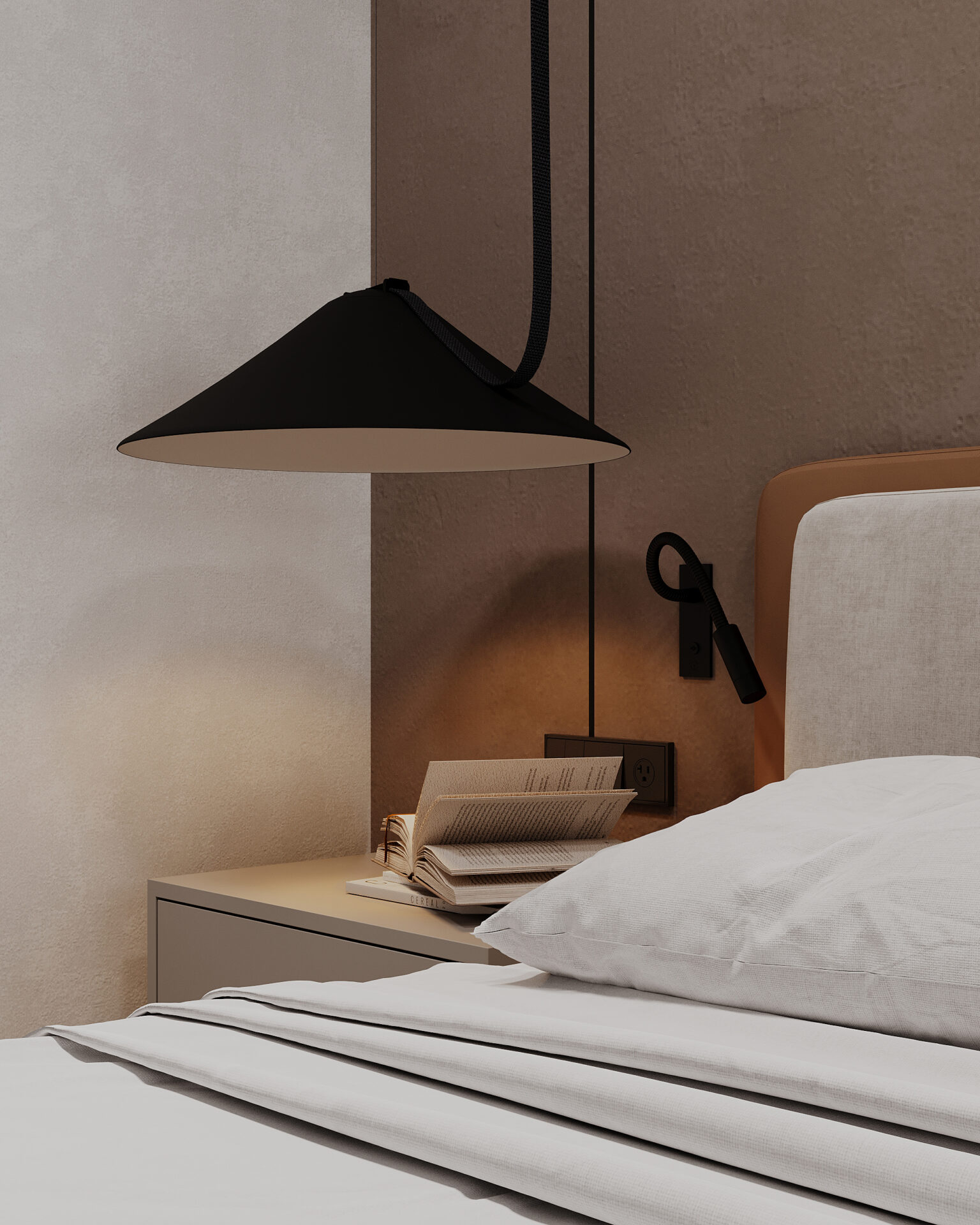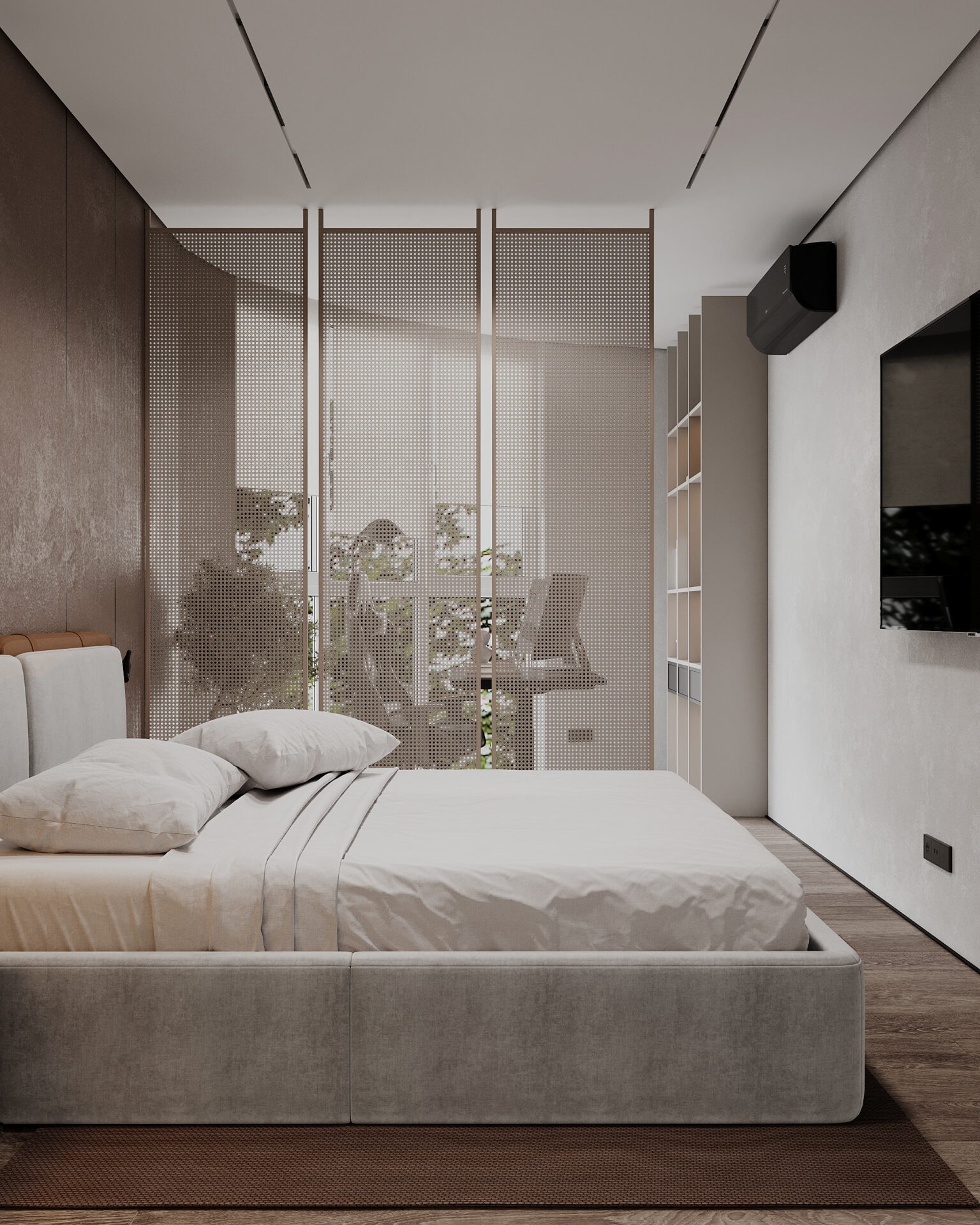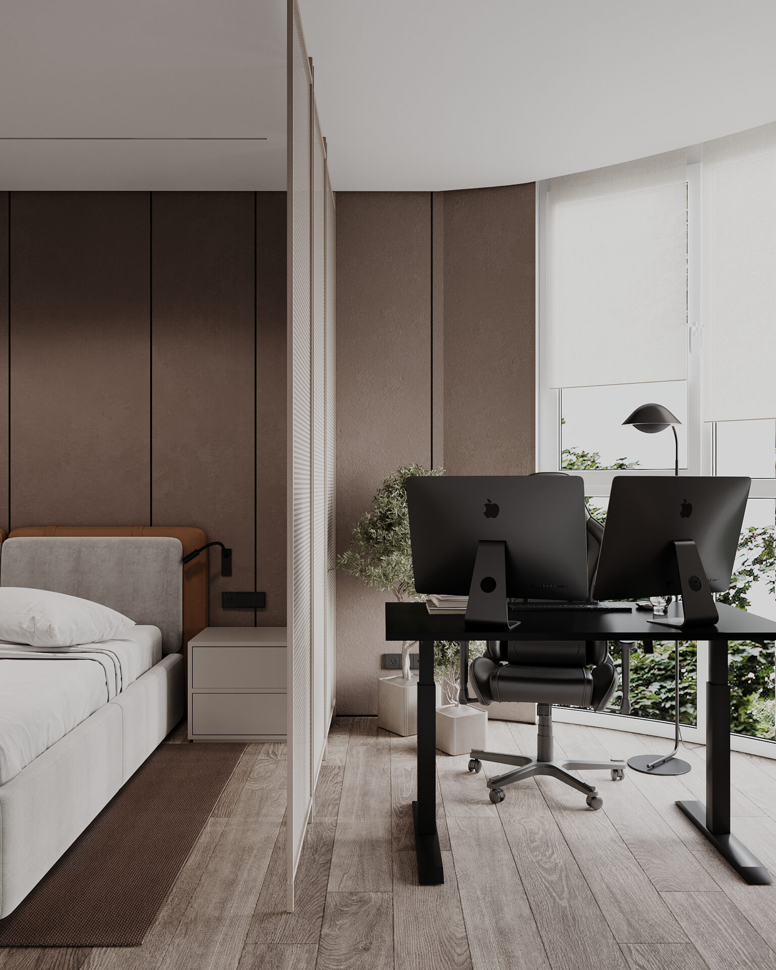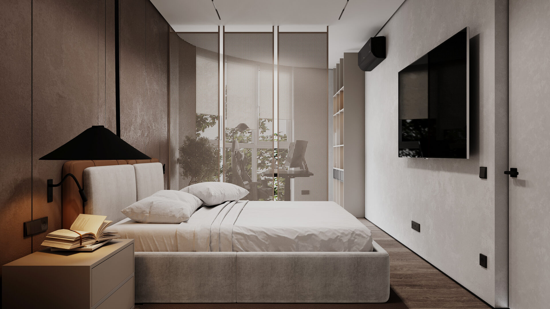 Квартира в сучасному стилі з яскравими акцентами. Об’єднані кухня-вітальня створюють простір, а два санвузли забезпечують комфорт. Поєднання сірих відтінків із теракотовими деталями виглядає стильно та гармонійно. Особливу увагу привертає імітація стіни під скелю, яка додає інтер’єру виразності та унікальності.