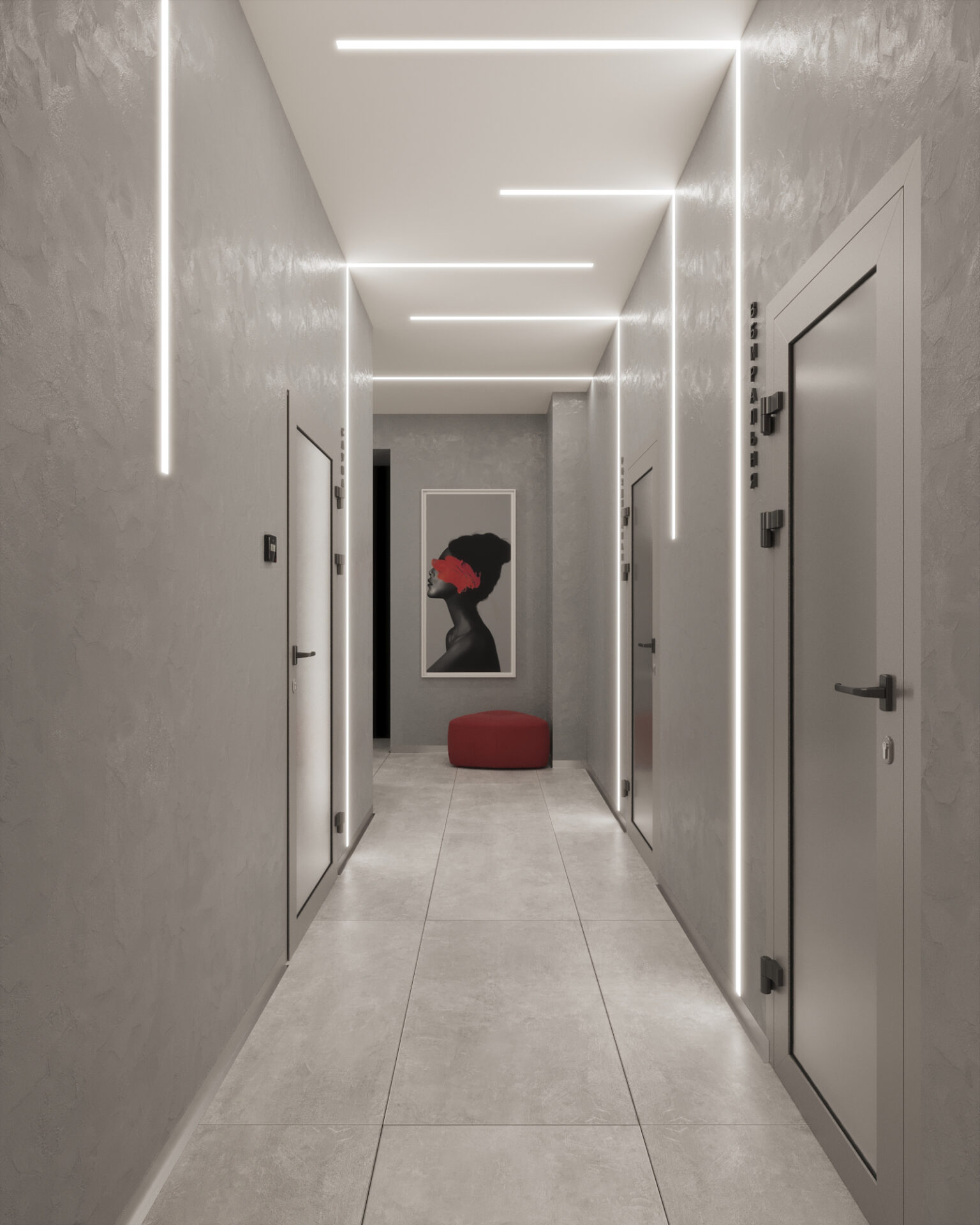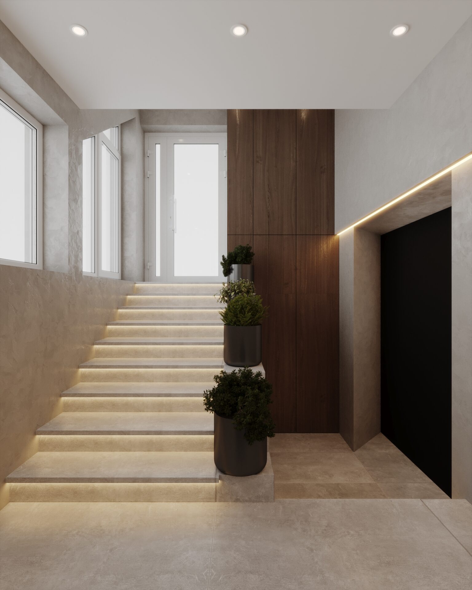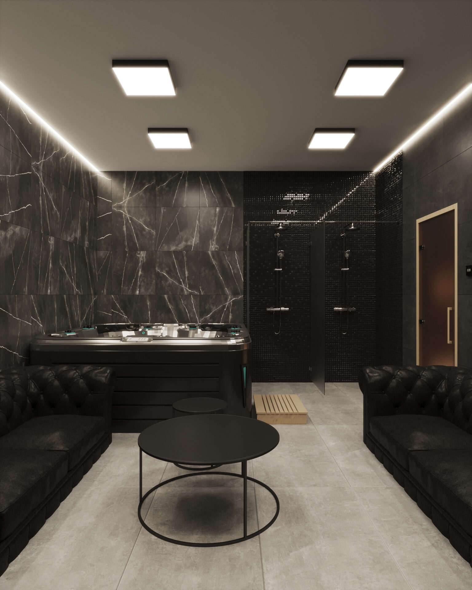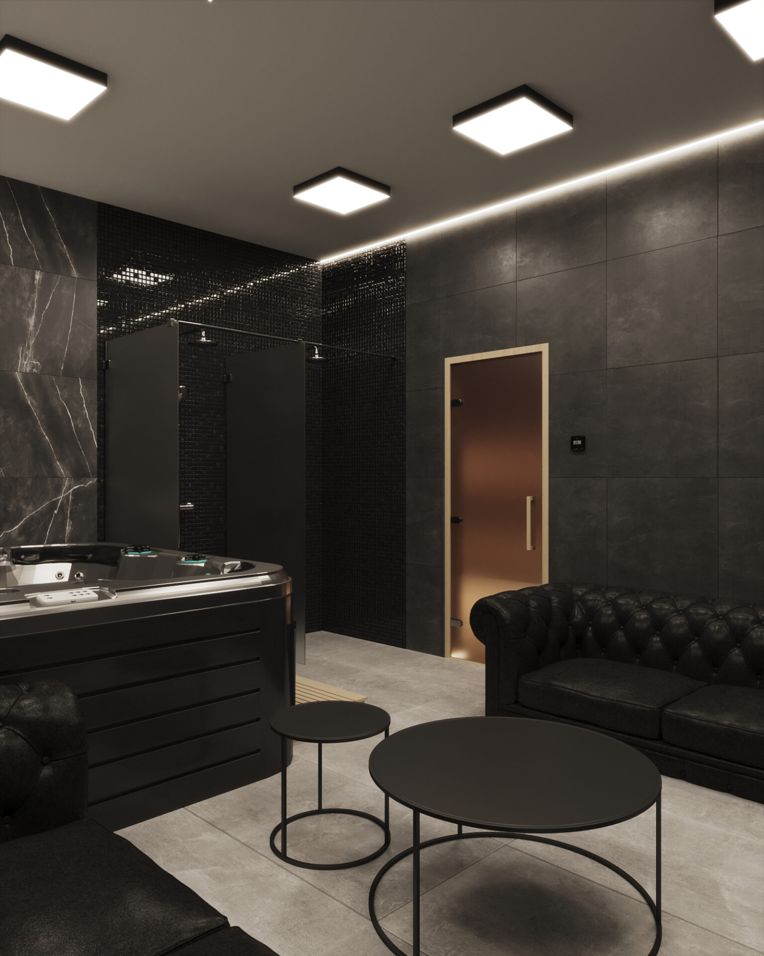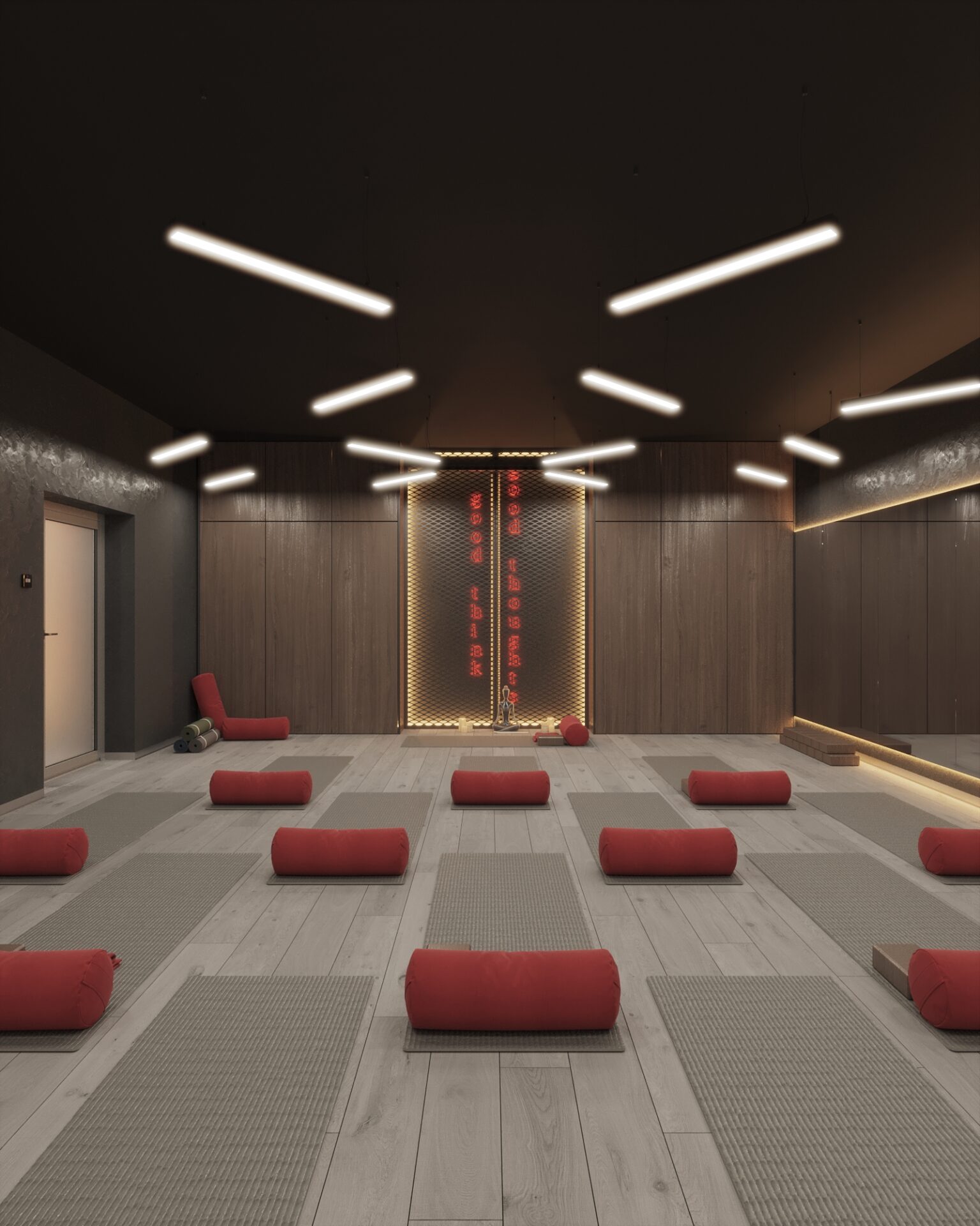 Мультифункціональний заклад на Івано-Франківщині, який об’єднує в собі кілька напрямків: спа, зал для занять йогою та косметологію. При проєктуванні у нас було два важливих завдання: уникнення глобальних перепланувань в силу технічних особливостей приміщення, а також використання в проєкті вже закуплених матеріалів.