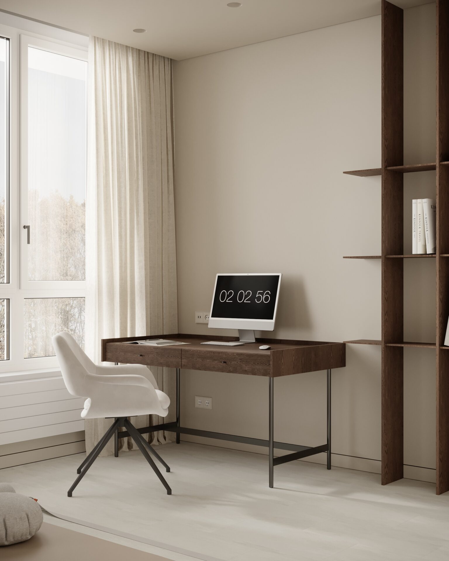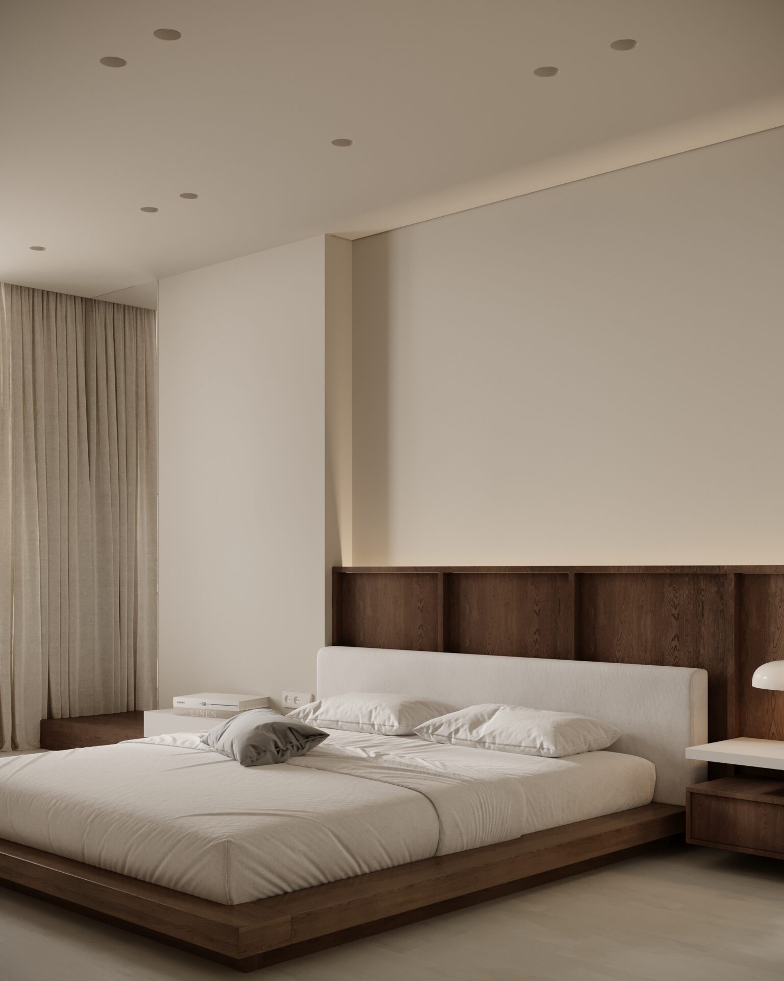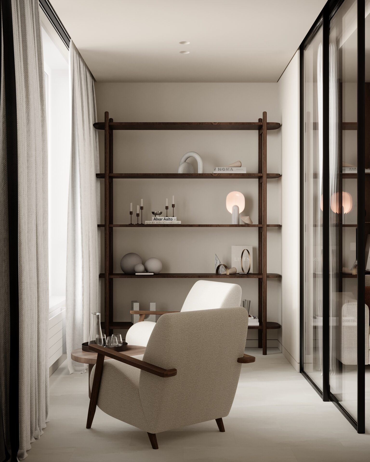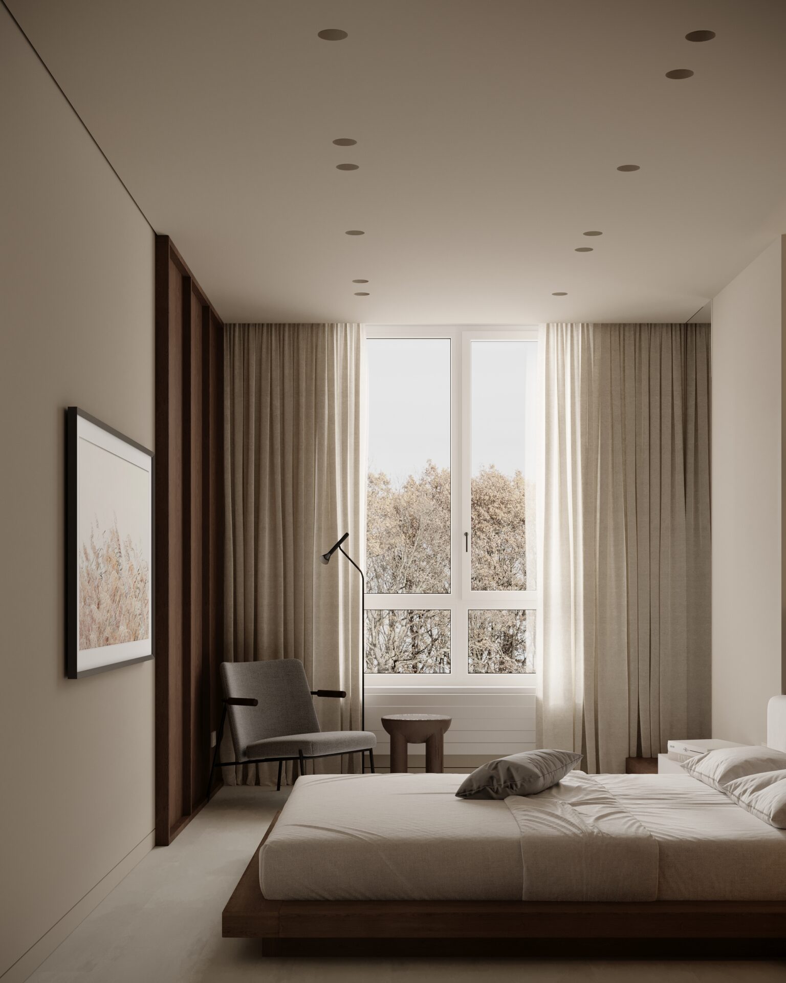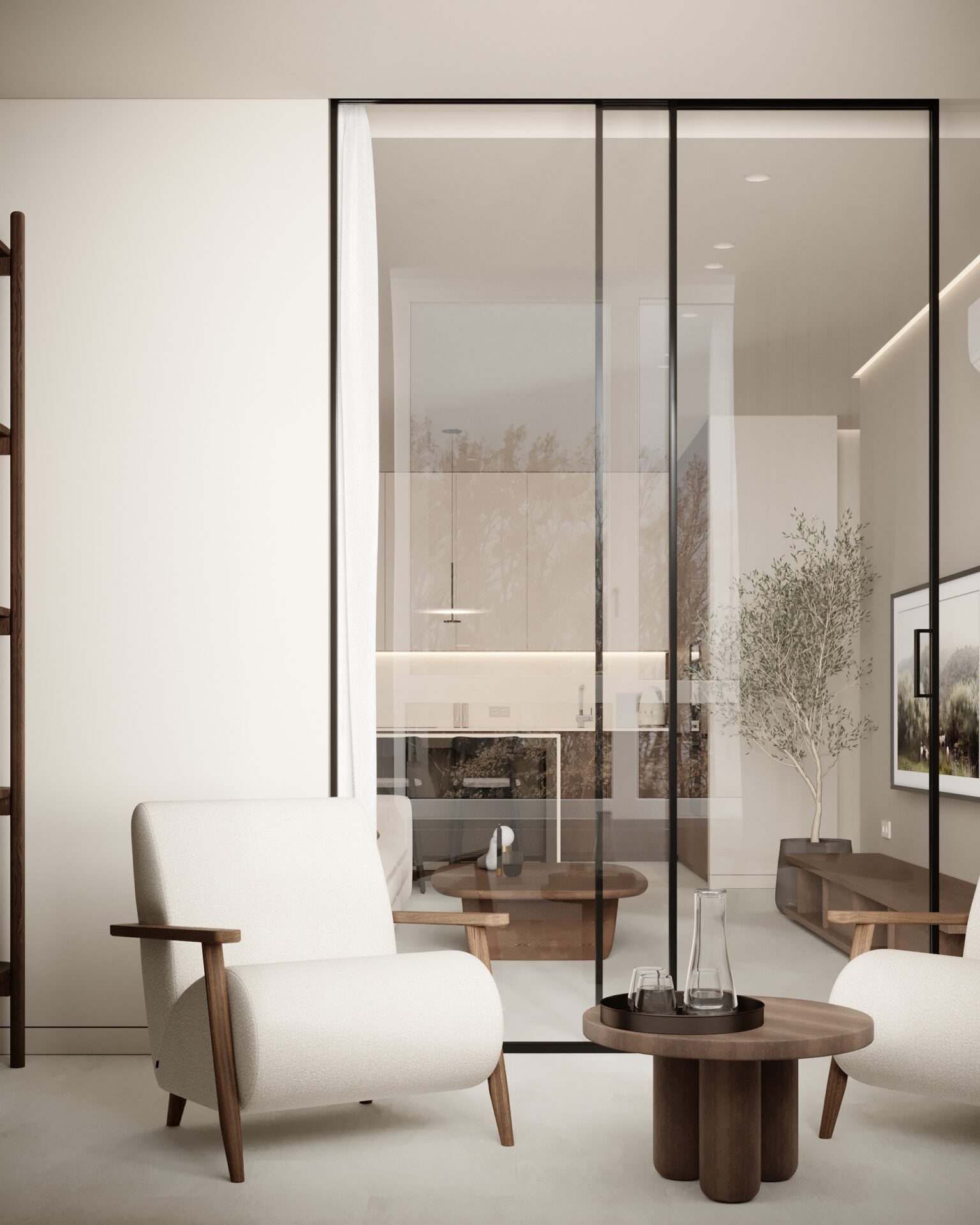 Цей проєкт є гармонійним поєднанням вабі-сабі та скандинавського стилю. Використання натуральних матеріалів з дерева та великої кількості природного світла є важливим елементом даної концепції. Окремої уваги заслуговує планувальне рішення – воно максимально нестандартне і підкреслює філософію проєкту.