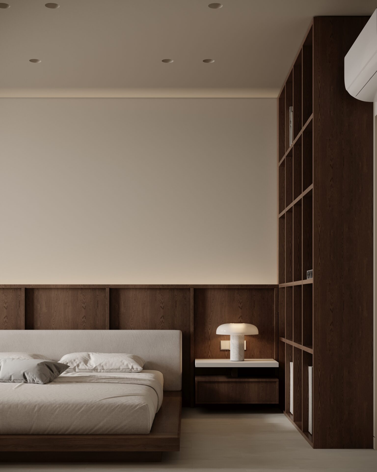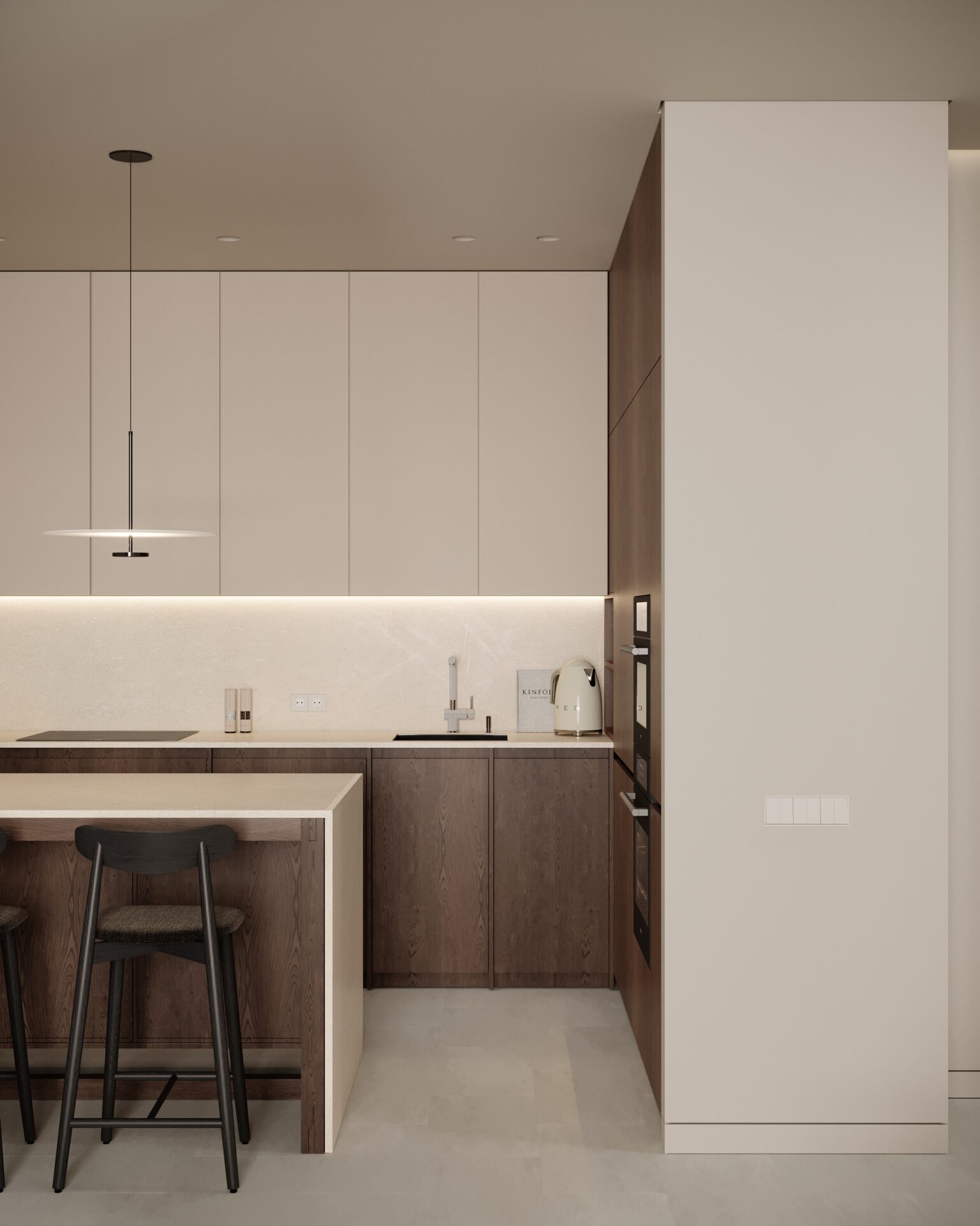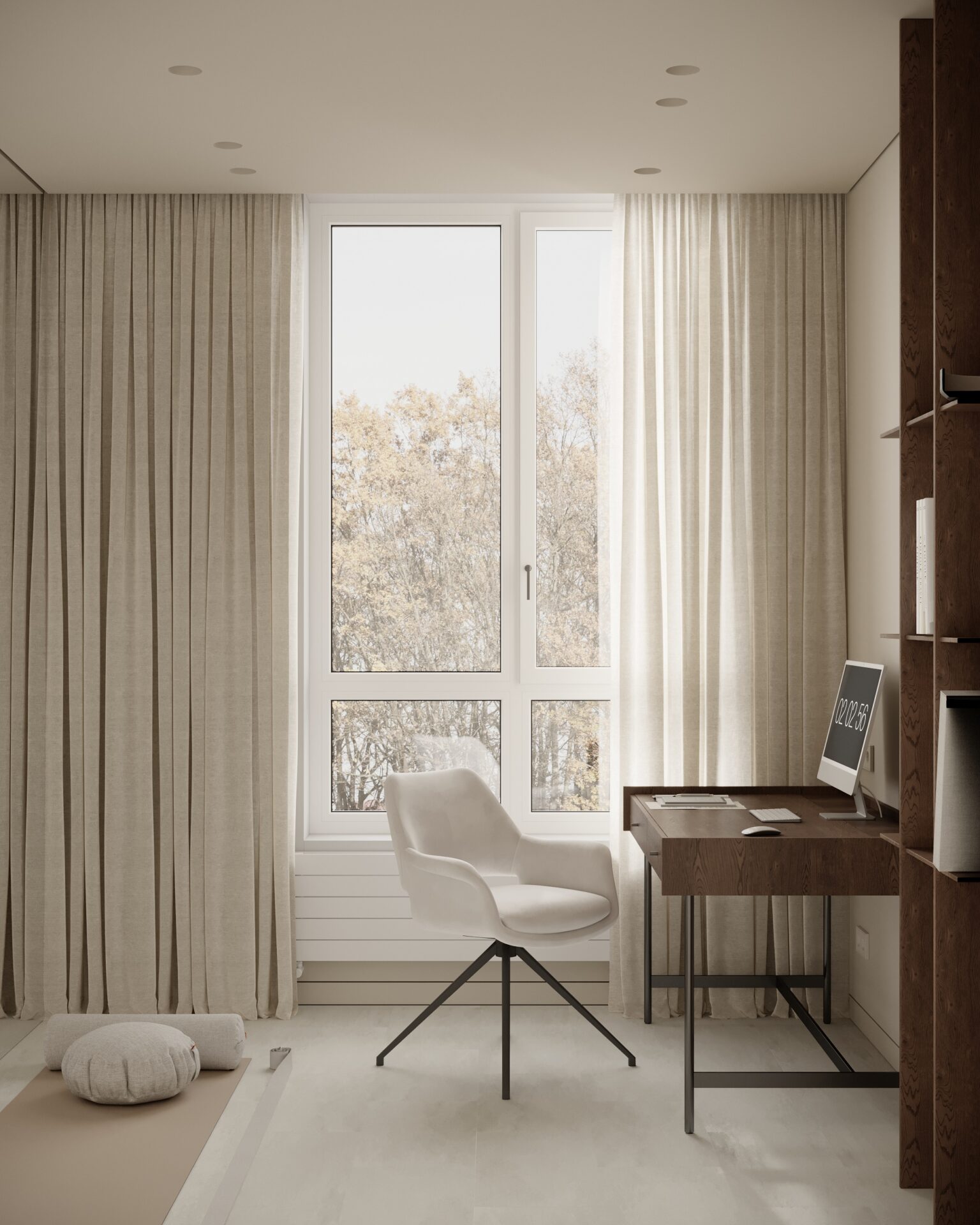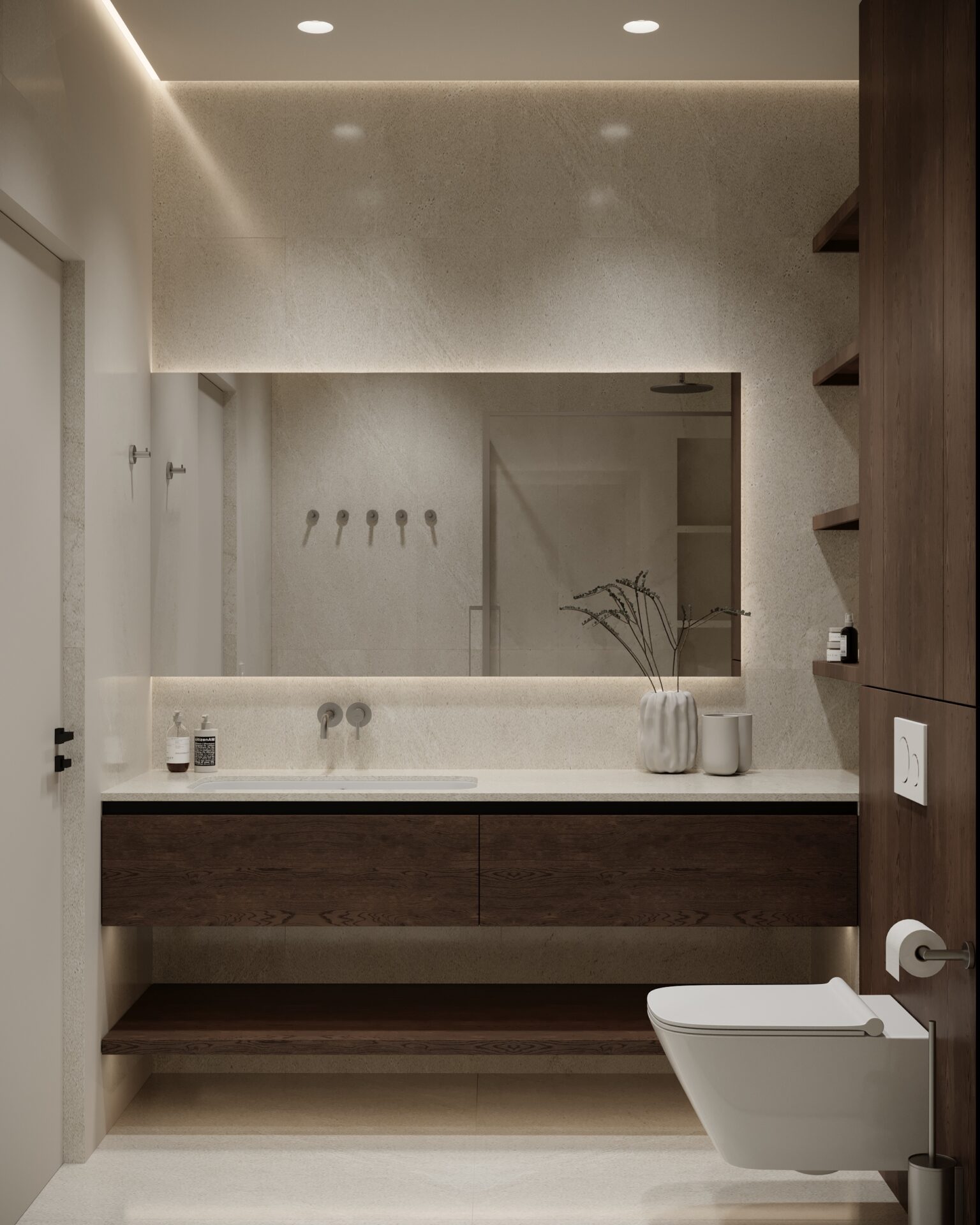 Цей проєкт є гармонійним поєднанням вабі-сабі та скандинавського стилю. Використання натуральних матеріалів з дерева та великої кількості природного світла є важливим елементом даної концепції. Окремої уваги заслуговує планувальне рішення – воно максимально нестандартне і підкреслює філософію проєкту.