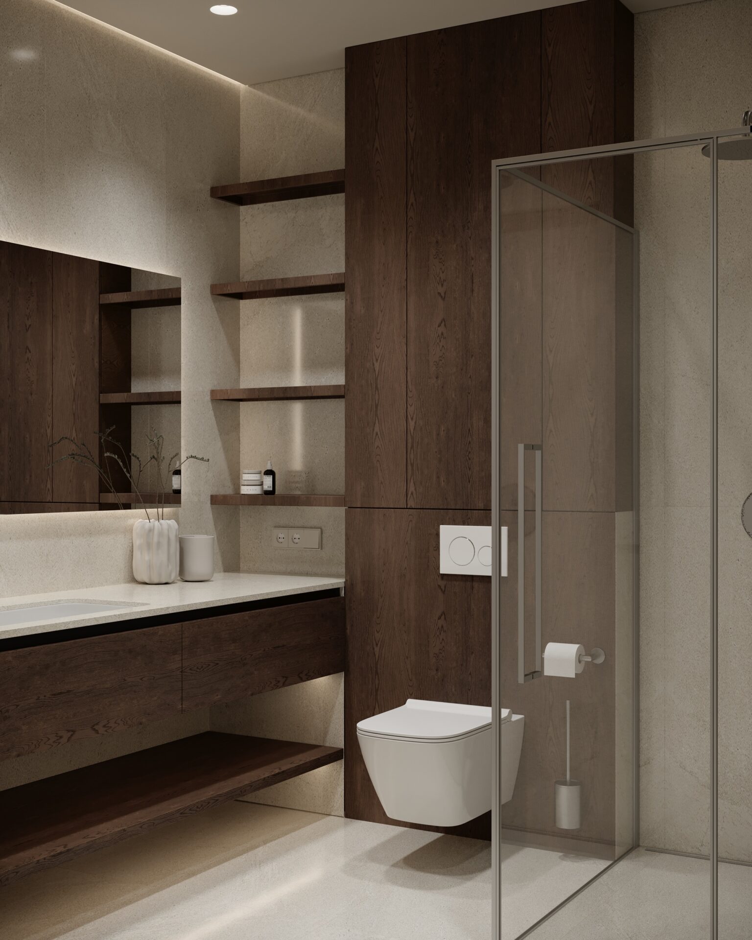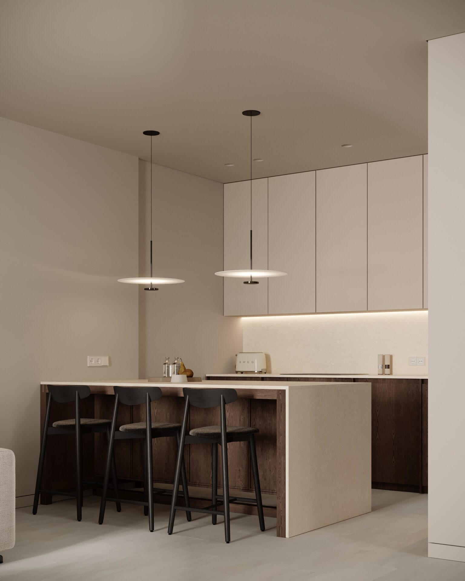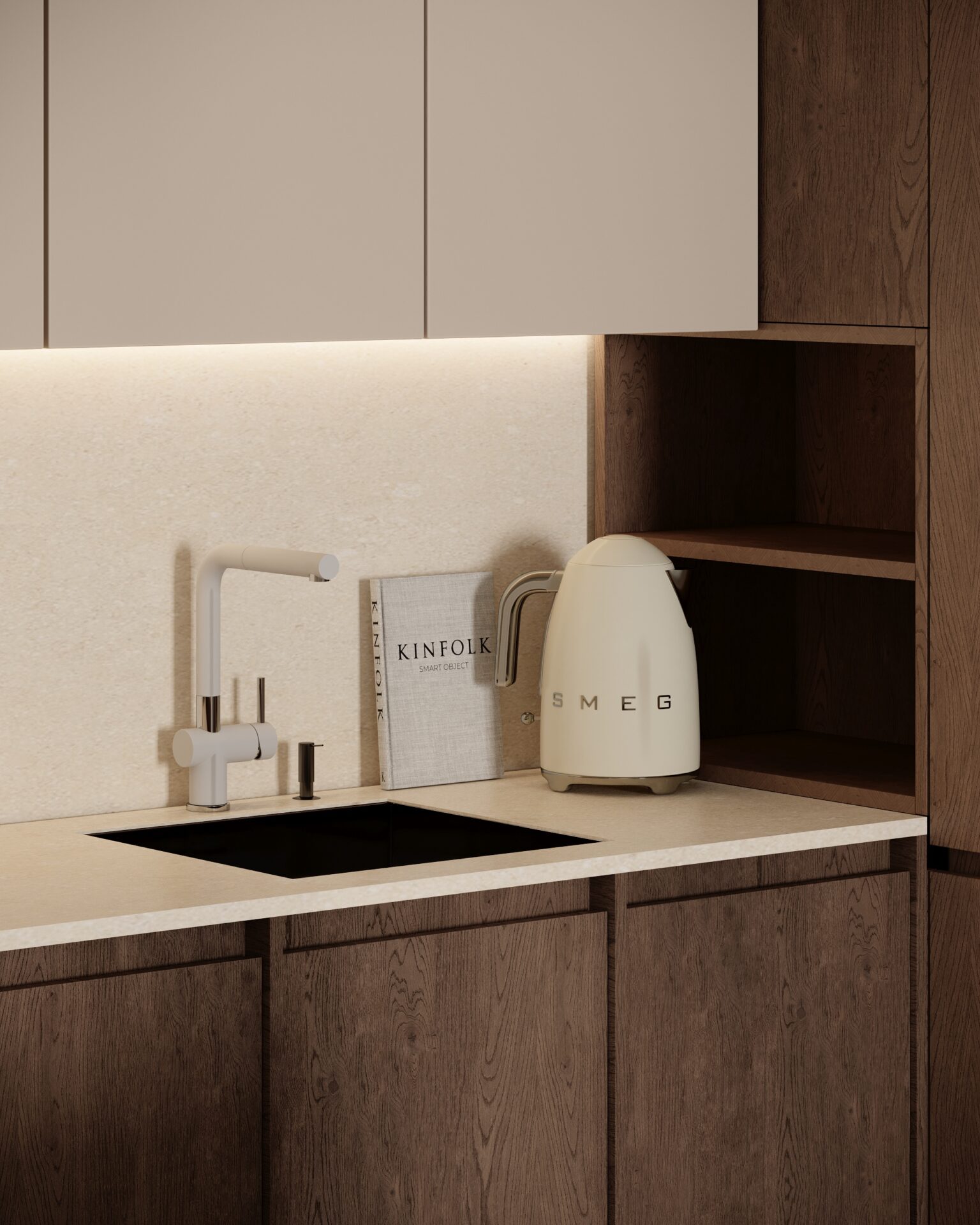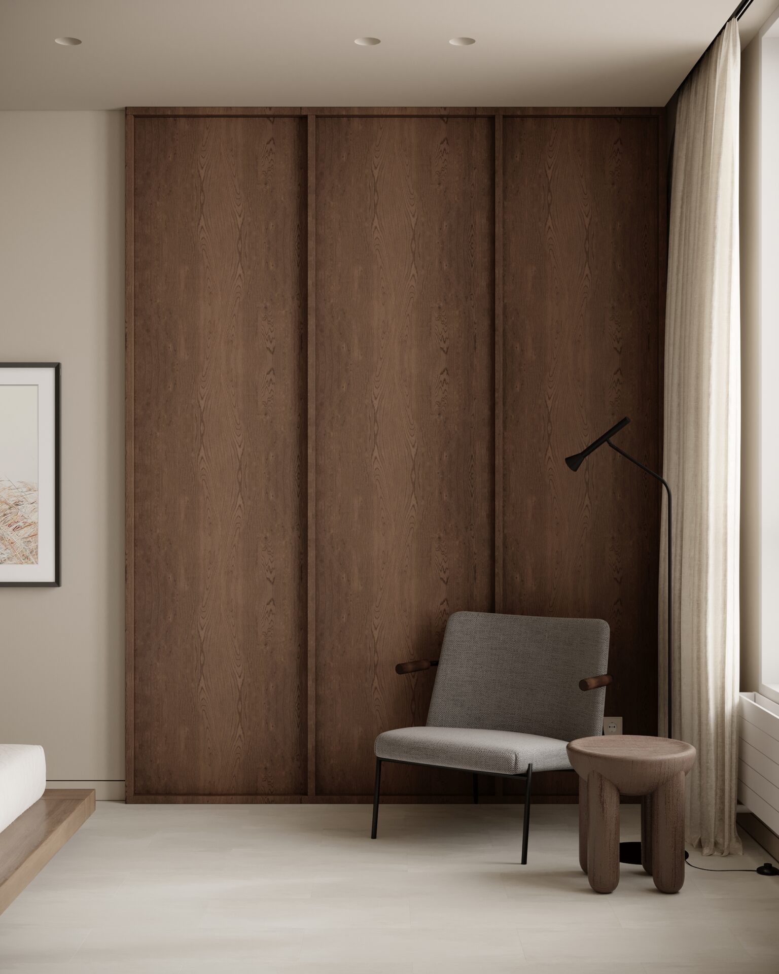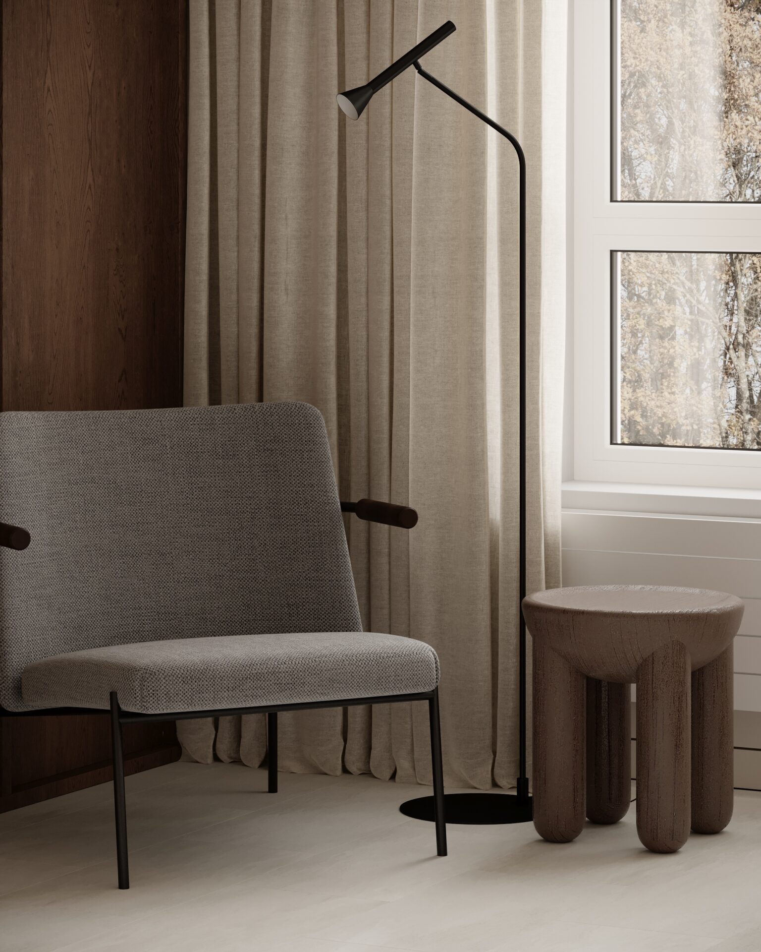 Цей проєкт є гармонійним поєднанням вабі-сабі та скандинавського стилю. Використання натуральних матеріалів з дерева та великої кількості природного світла є важливим елементом даної концепції. Окремої уваги заслуговує планувальне рішення – воно максимально нестандартне і підкреслює філософію проєкту.