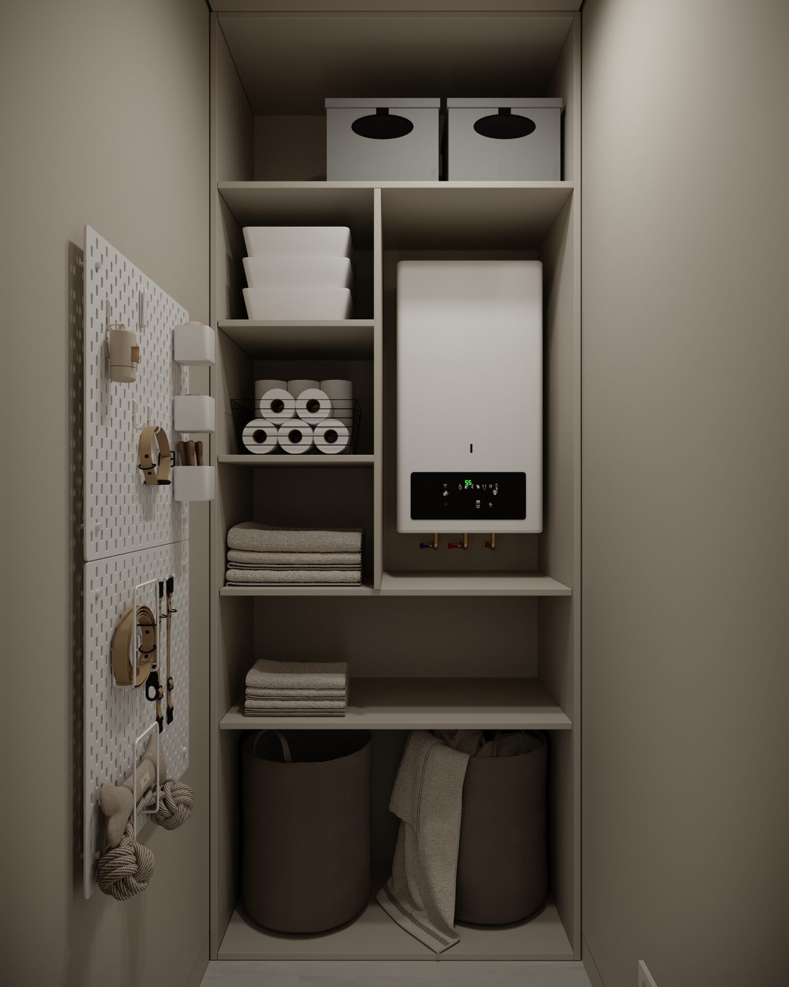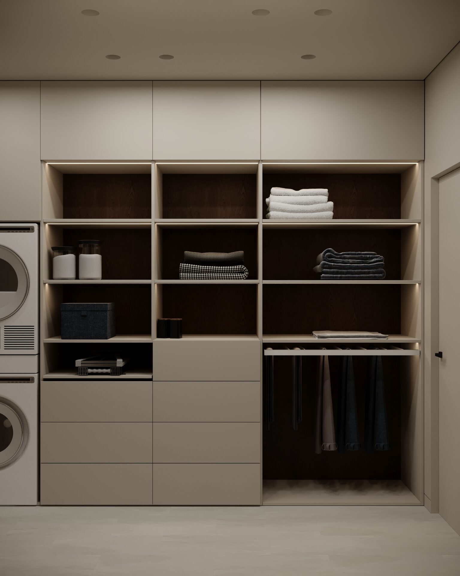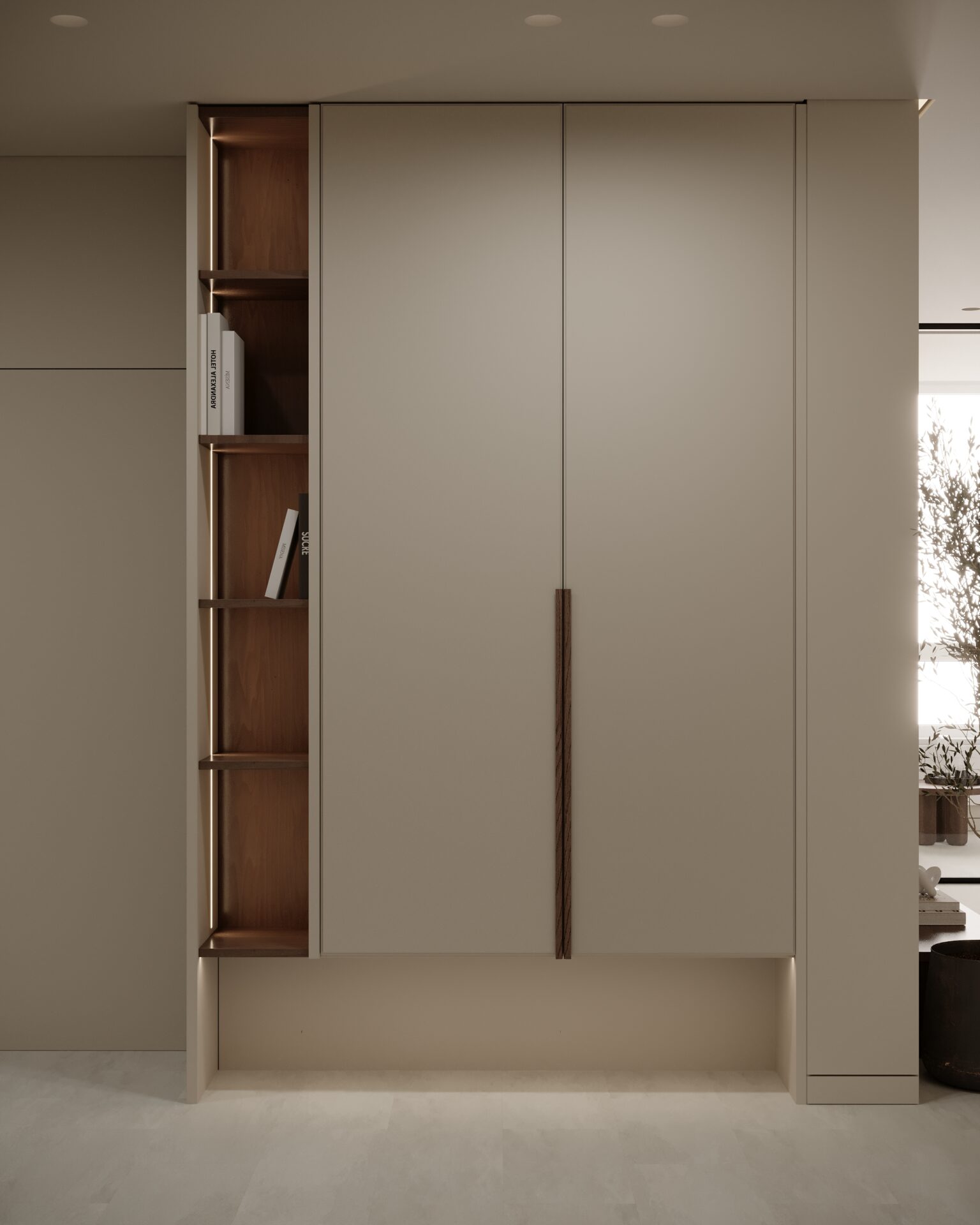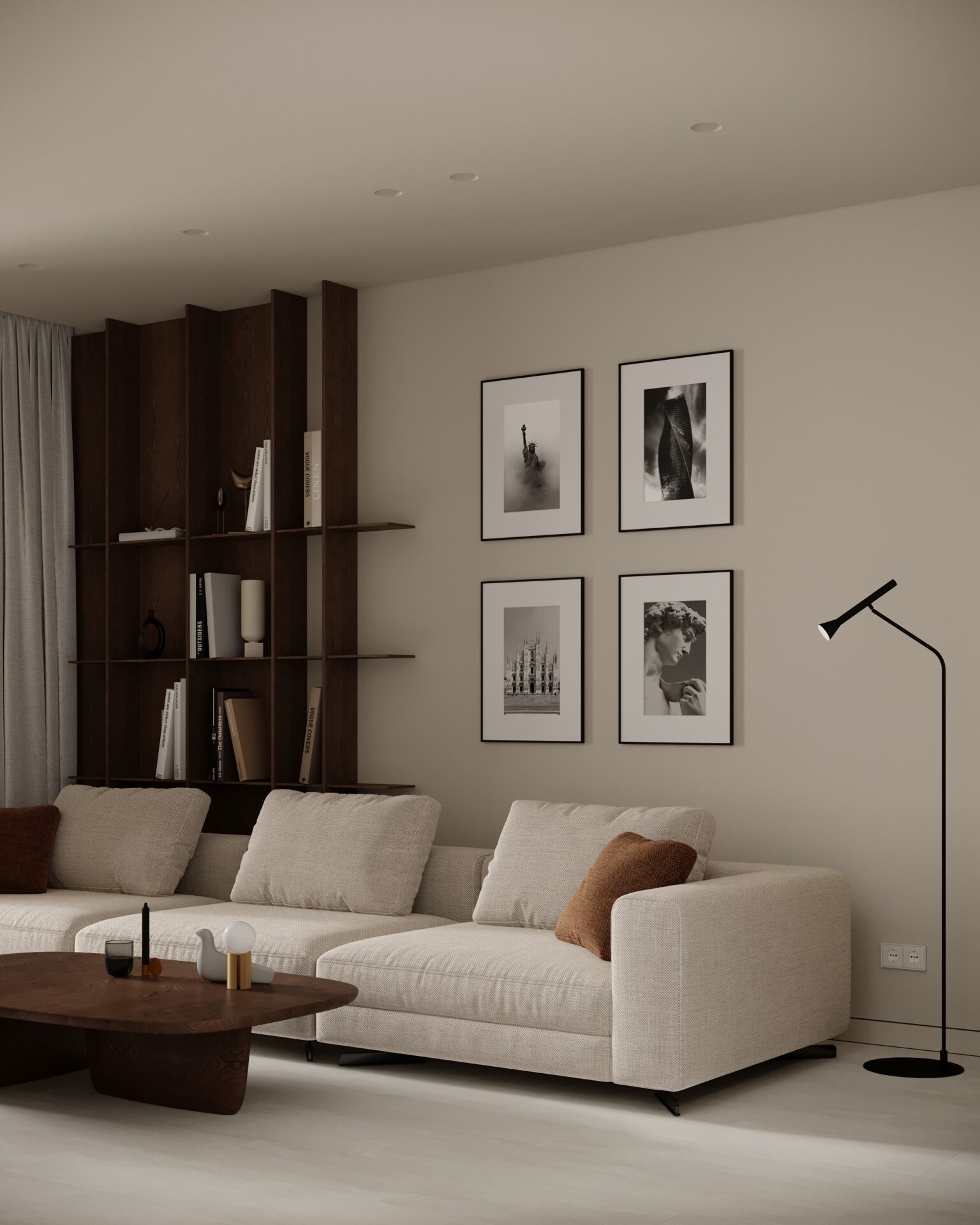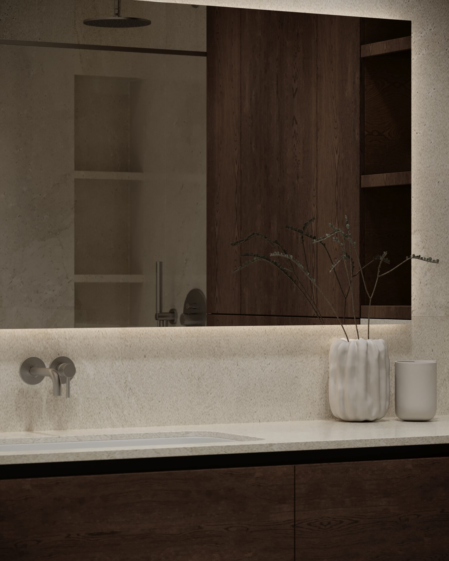 Цей проєкт є гармонійним поєднанням вабі-сабі та скандинавського стилю. Використання натуральних матеріалів з дерева та великої кількості природного світла є важливим елементом даної концепції. Окремої уваги заслуговує планувальне рішення – воно максимально нестандартне і підкреслює філософію проєкту.